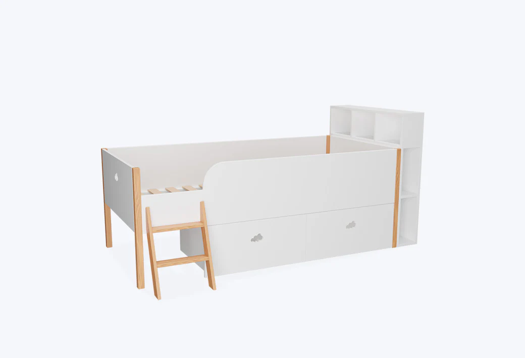 - Cama de altura media en madera y blanco