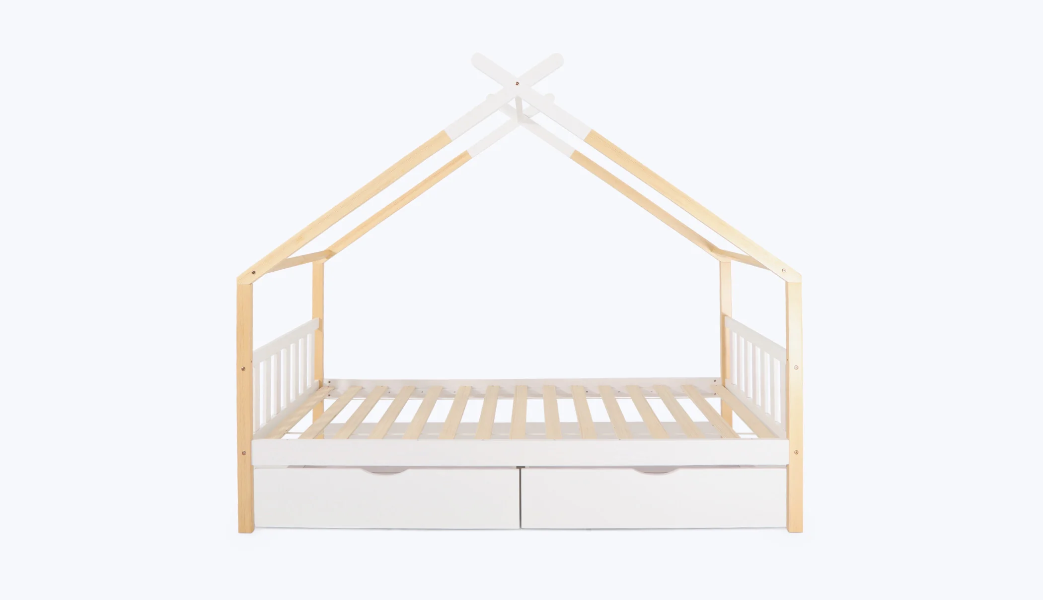 - Hecha de madera maciza de pino y pintura al agua