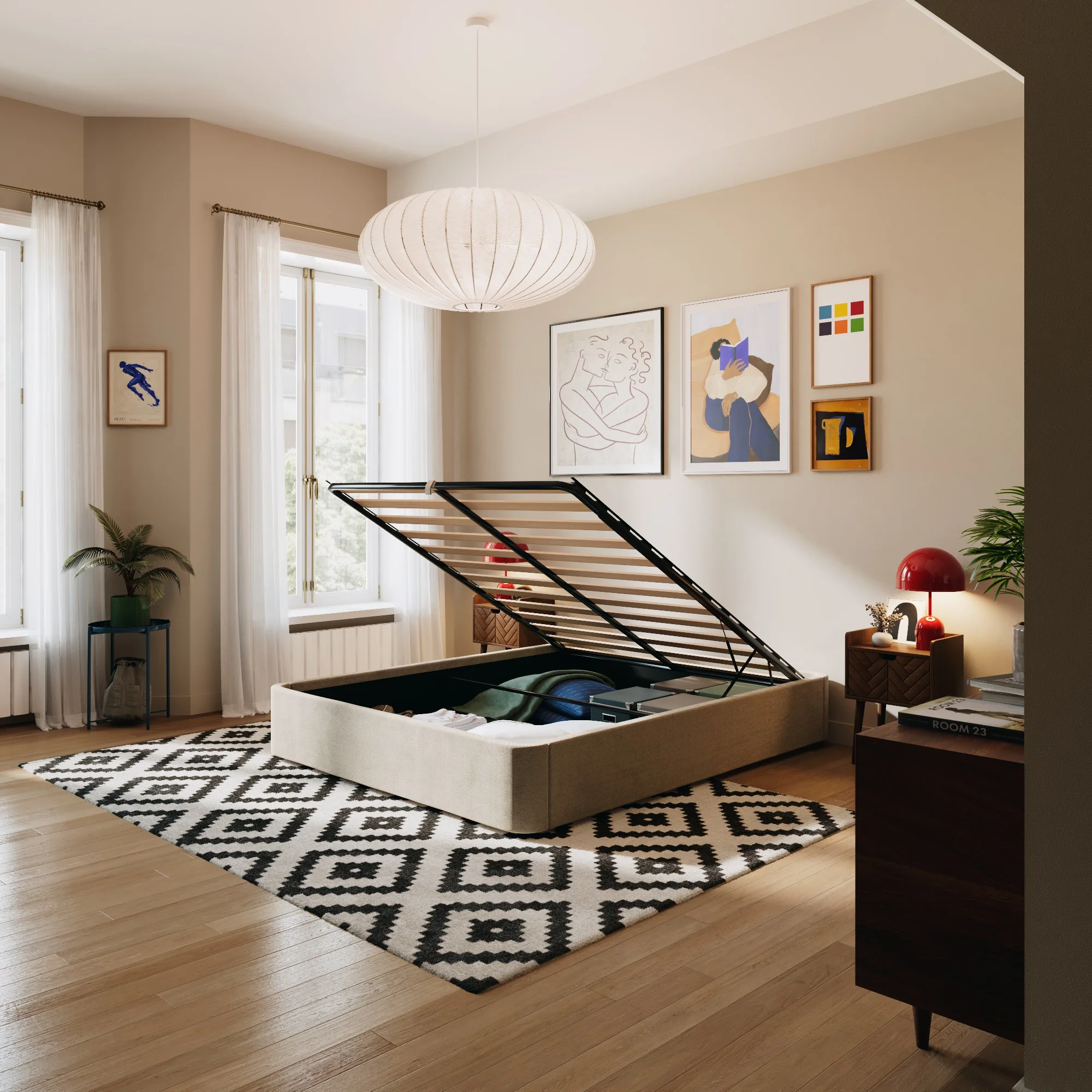 El somier con arcón Nova es una base de cama con almacenamiento integrado que maximiza el espacio gracias a su arcón de gran capacidad (de 460 a 970 L), accesible mediante un sistema de apertura fácil con pistones y tirador ergonómico. Perfecto para guardar edredones, almohadas o ropa sin ocupar espacio adicional en la habitación. Su estructura sólida de madera y metal, junto con 12 lamas fijas y una barra central de refuerzo, ofrece un soporte estable y duradero para tu colchón. El tejido tapizado acolchado y la tela antipolvo garantizan comodidad en el día a día y una higiene óptima. Diseño depurado, instalación sencilla y entrega gratuita: una solución práctica, resistente y estética para mantener tu dormitorio organizado.